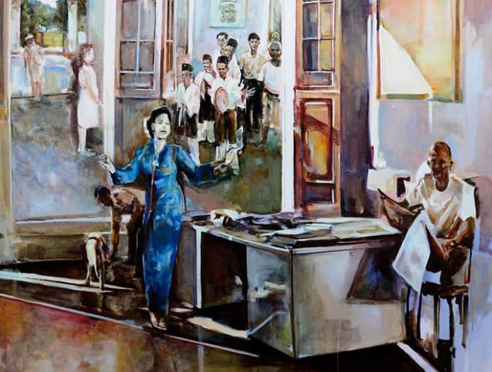 It'due south not the first time Hilmi has proverbially travelled dorsum in time for his artwork – his previous paintings and videos were collages that sprung from archival images of old P Ramlee movies, old street scenes or images (a adult female performing a bangsawan, for case) and even Corking Earth, too.